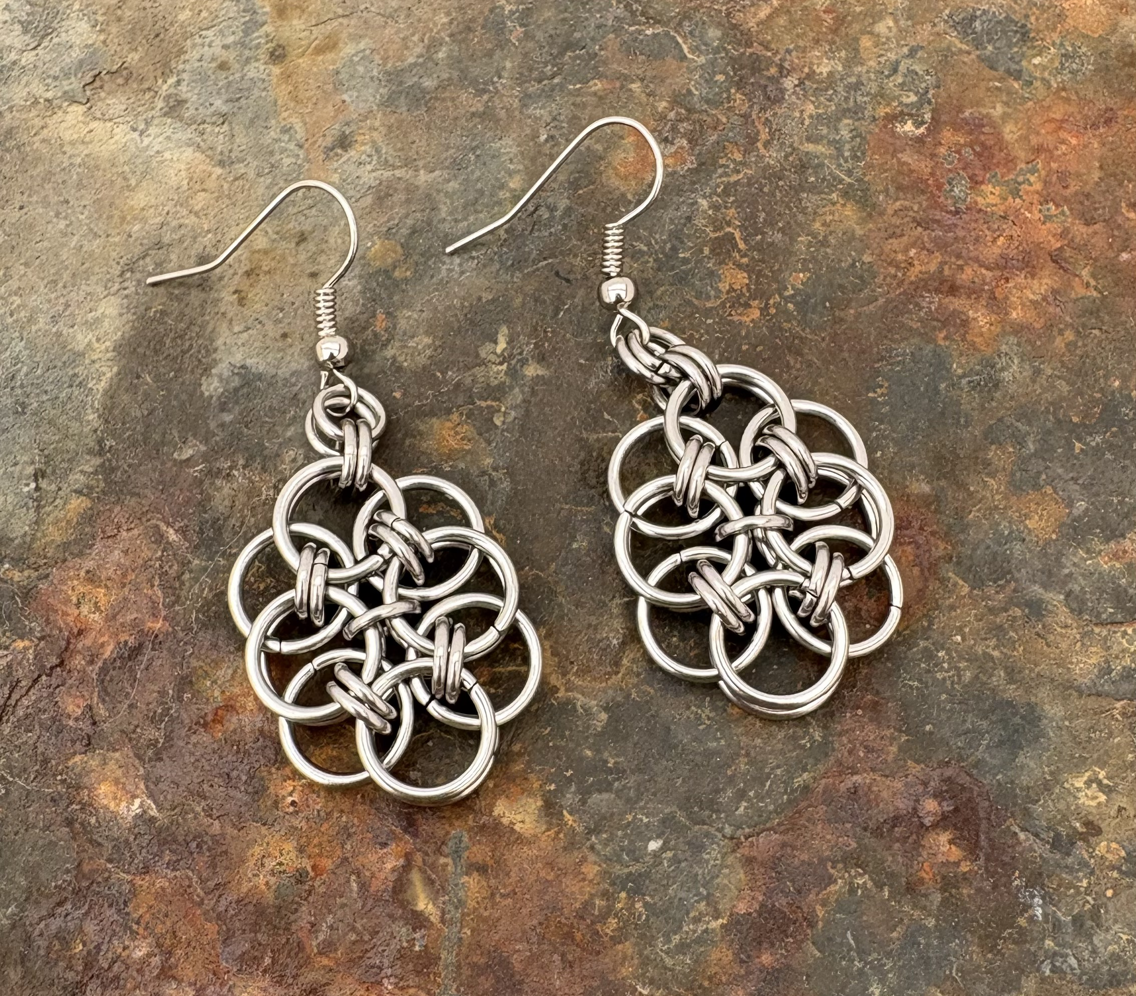 Aretes chainmaille hechos a mano: ligereza, detalle y brillo en cada eslabón.