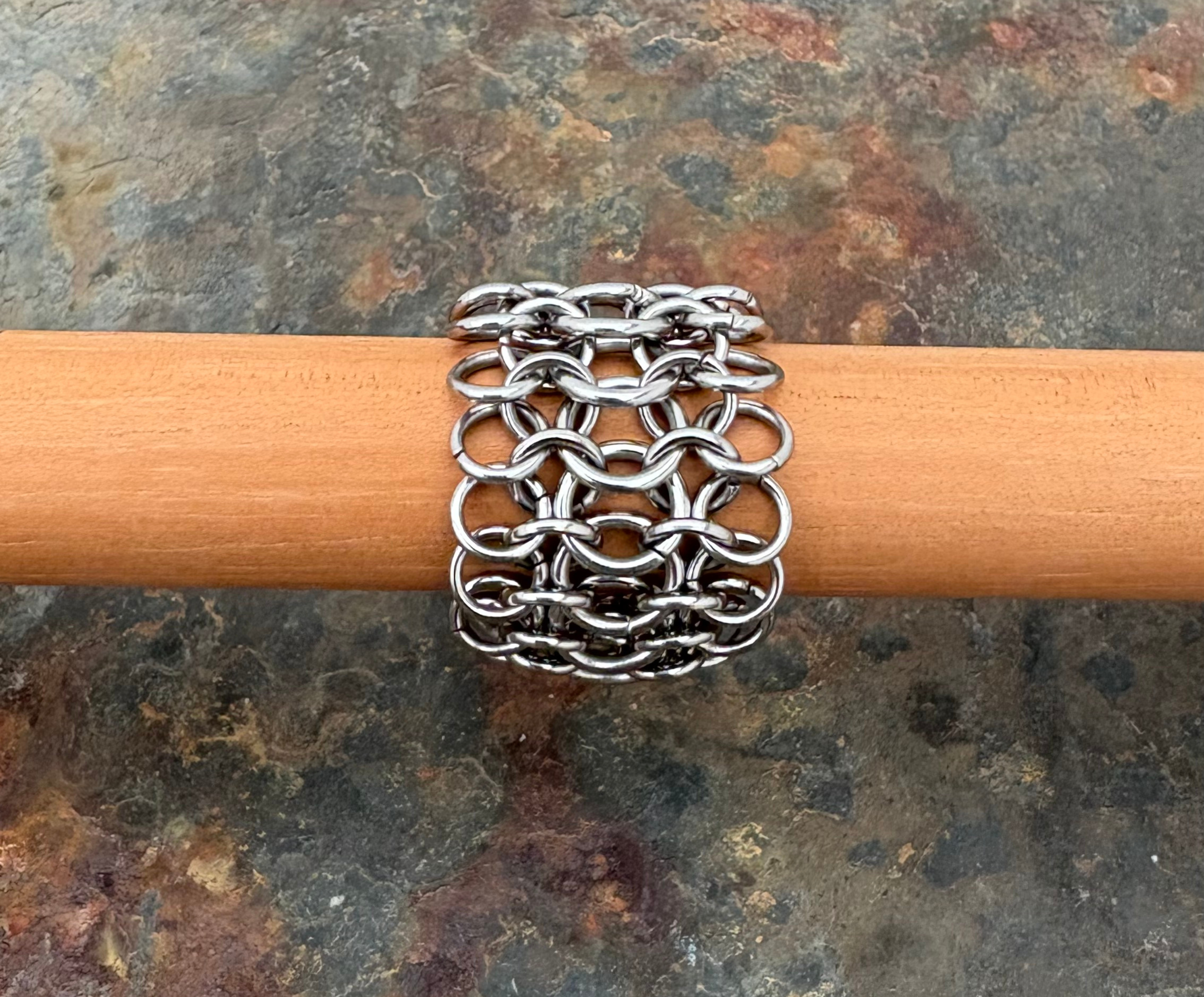 Brazaletes chainmaille hechos a mano: fuerza, detalle y estilo en cada eslabón.